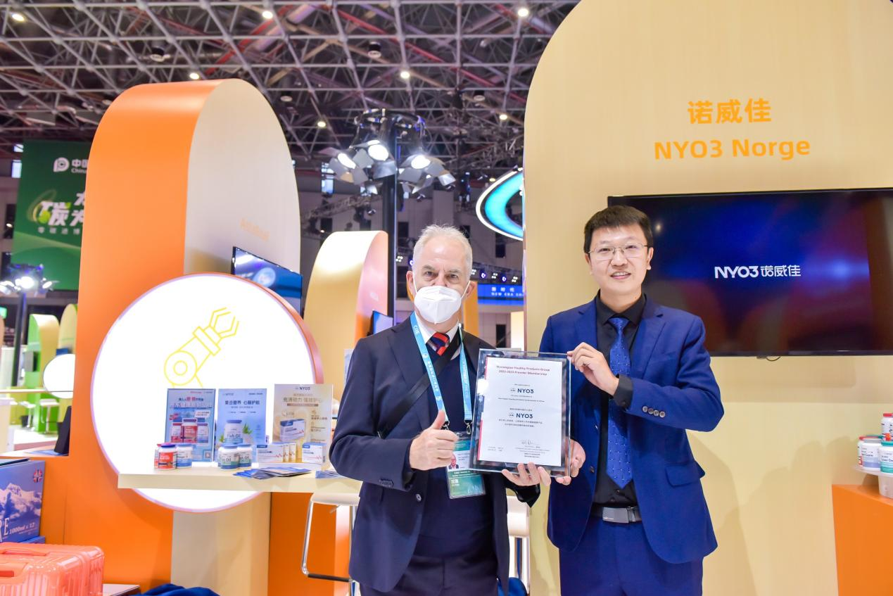 11月6日,应挪威健康产品集群(Norwegian Healthy Products Group,简称“NHPG”)的邀请,挪威高端膳补营养品牌NYO3第4次参展进博会,并在挪威驻华参赞Rolf先生的见证下获得NHPG授予的核心会员证书,成为挪威健康品牌“国家代表队”的核心成员。