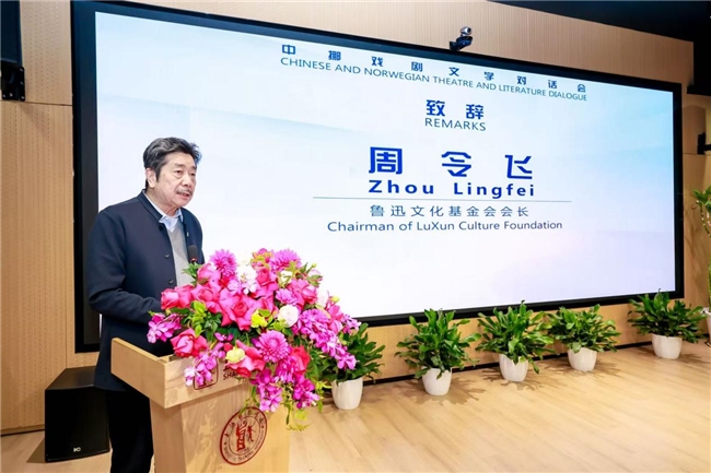 开幕式上,鲁迅文化基金会会长周令飞回顾了中挪文学交流史,结合2024年鲁迅文化基金会代表团访问挪威易卜生故居的体验,分享了鲁迅与易卜生之间超越时空的精神联结,阐述了中挪戏剧在互学互鉴中共同成长的价值。他热切期望未来有更多优秀作品进入中挪两国的公众视野,持续推动文化交流。
